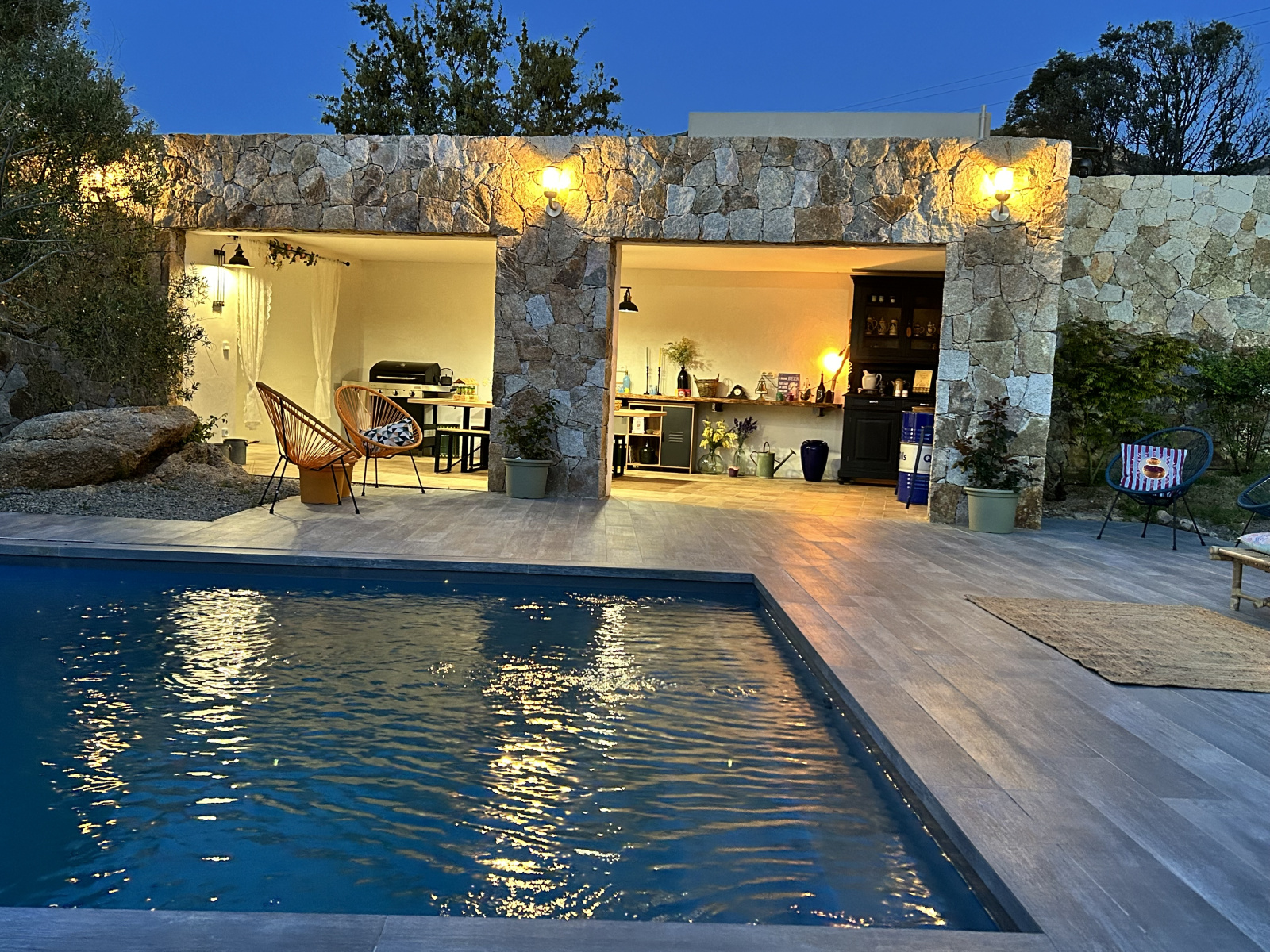 Calvi (20260)Sur un terrain de 3000 m2 environ dominant la baie de Calvi se trouve une villa contemporaine réalisée par un architecte, sa surface est de 190 m2 + 90 m2 aménageable, piscine au sel chauffée de 8x4, avec un pool house tout en pierre de 50 m2, la villa se compose : d'une entrée, une cuisine entièrement équipée ouverte sur un grand séjour, avec de grandes baies donnant sur la terrasse avec une très belle vue mer, et sur le jardin paysagé, côté sud, de grandes baies donnant sur la piscine et le pool house, un dégagement avec une suite parentale, dressing et salle de bains, un couloir, un wc, 3 chambres, une salle d'eau, actuellement une chambre fait office de bureau, villa entièrement climatisée, prestations de qualités, portail visio, forage,goutte à goutte, très belle vue mer et montagne.